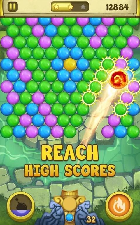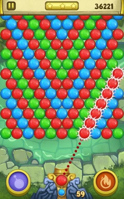 * Pop 7 gelembung berturut-turut untuk membuka bola api.