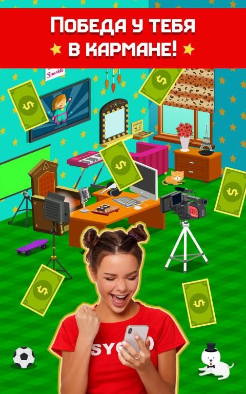2. Зарабатывай миллионы на своих видео и модернизируй свою влогер-студию, чтобы повышать доход! Это почти как кликер денег, только играют в него … блогеры! Видео приносят подписчиков, подписчики - деньги, деньги - оборудование. Это не просто clicker, это увлекательнейшая блогер игра, симулятор жизни! Maria Way плохого не посоветует