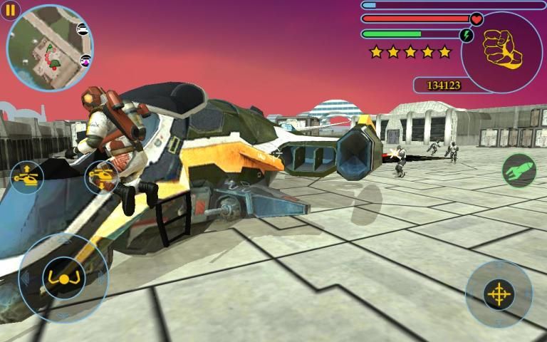 Bertahan hidup serangan droid. Percobaan dengan kendaraan masa depan. Jelajahi atmosfer planet dengan jet-baju Anda.