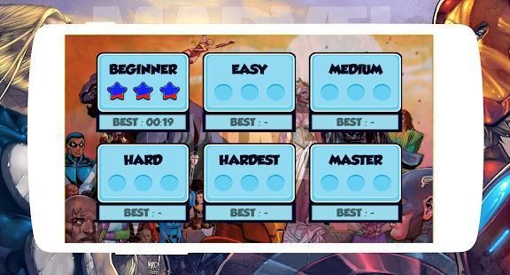 Menyelesaikan semua tingkat dengan nilai sempurna dan membuktikan bahwa Anda adalah penggemar sejati komik Marvel dan film.