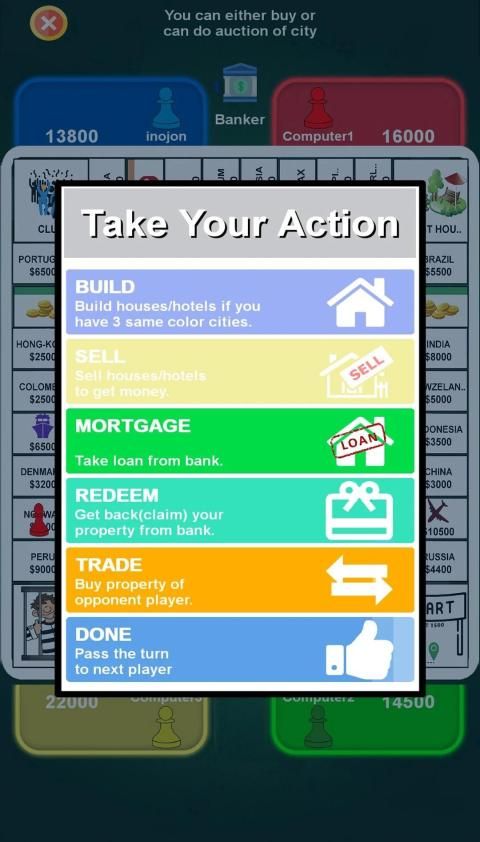 The game can play with your friends and family and Can be played with 4 people at once. Trafficking the land, building houses, winning auctions, and most importantly - have fun.