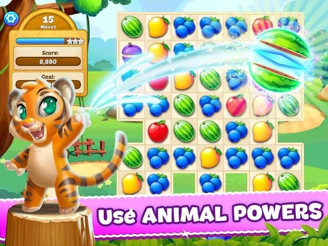• Aktifkan lezat Buah Super power-up dan menonton ubin buah mencurahkan dalam jatuh bebas menarik!