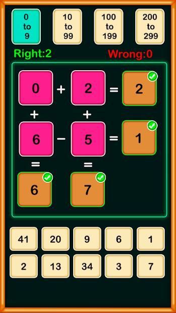 - Four different Difficulty. 0 to 9, 10 to 99, 100 to 199, 200 to 299.