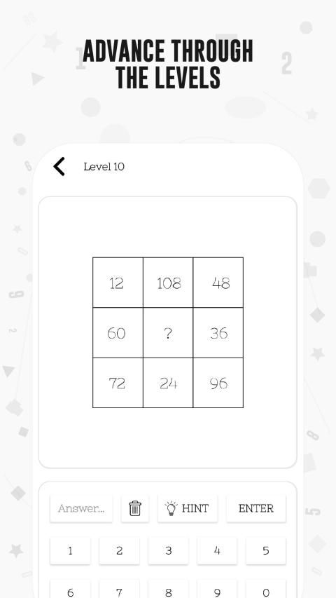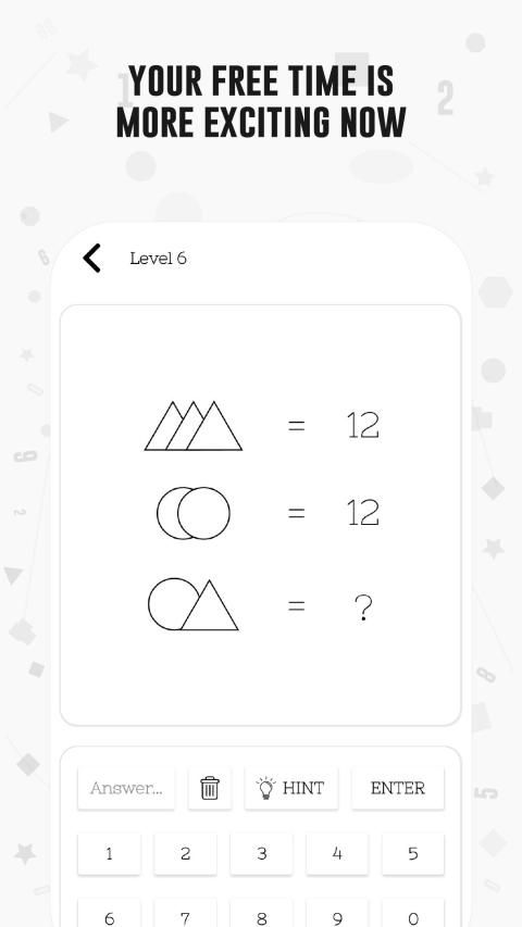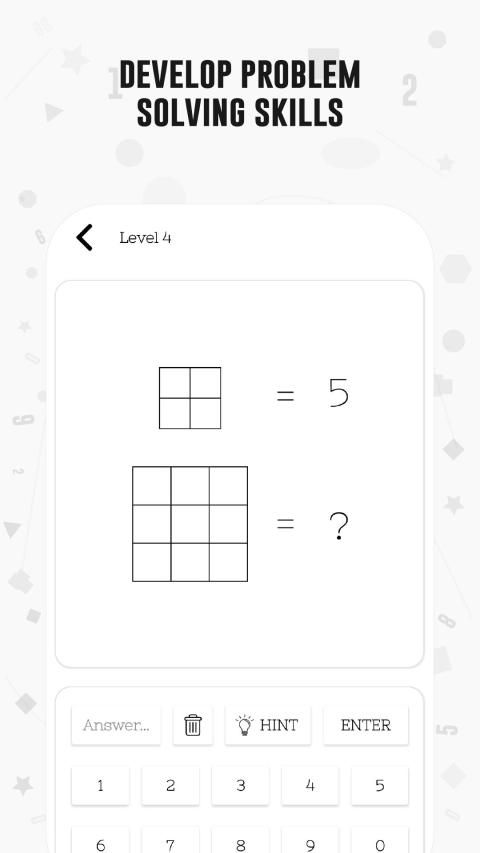 Math reveals your mathematical talent through brain games that are hidden in geometrical shapes. You will train both parts of your brain by exploring the relationship between the numbers in the geometrical shapes, and you will stretch the limits of your mind sharp.