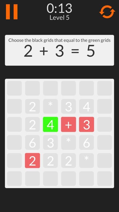 3) Tekan tombol segarkan untuk mengatur ulang papan permainan (ketika jawaban sudah benar, tetapi bukan yang diinginkan dalam puzzle tertentu)