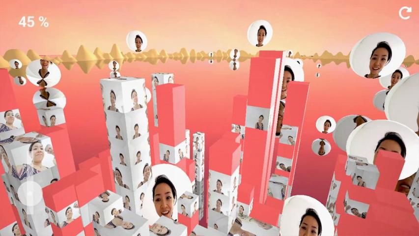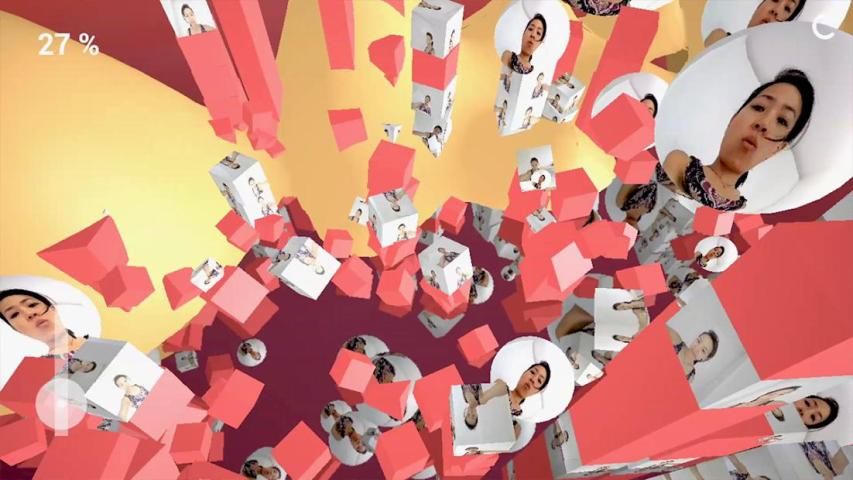 Between each level your live video appears for a short time, projected a thousand times all over the world. It's just you everywhere. Now you are the superstar and can share this magical moment with others.