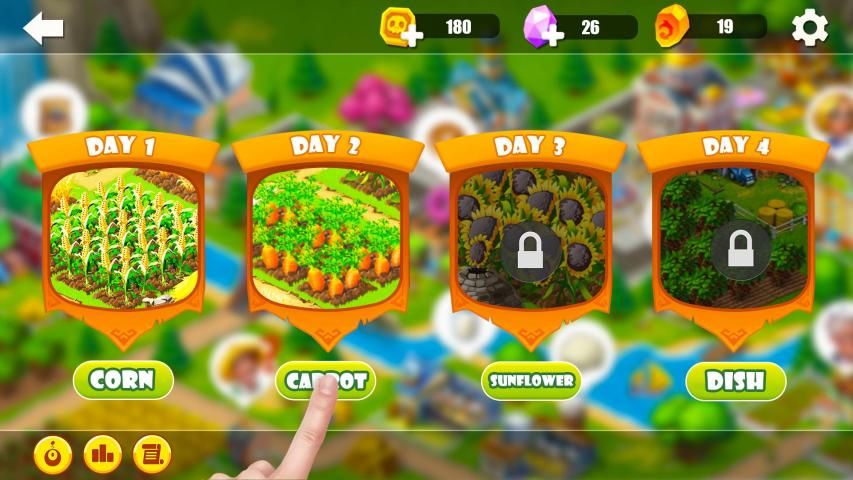 Fresh tomatoes, ripe corn, red carrots, yellow sunflowers... Just watch them grow every day and you don't have to work at all. When it comes to the harvest season, exchange them for more gold coins.