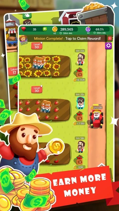 You are a farmer. The income earned by the farm makes you a tycoon of this business empire. You need to hire the farm manager, workers and tractor drivers to run your farm and try to open more farms.