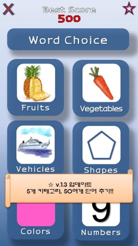 v.1.3 채소, 탈것, 색깔, 도형, 숫자 단어 추가
