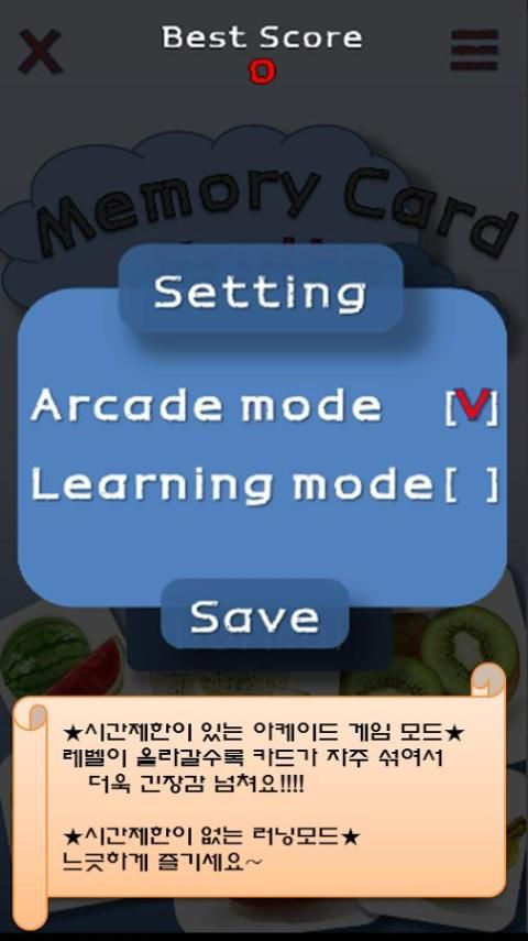- Easy단계는 3쌍의 과일을, Normal은 6쌍의 과일을, Hard는 10쌍의 과일을 찾으면 되요.