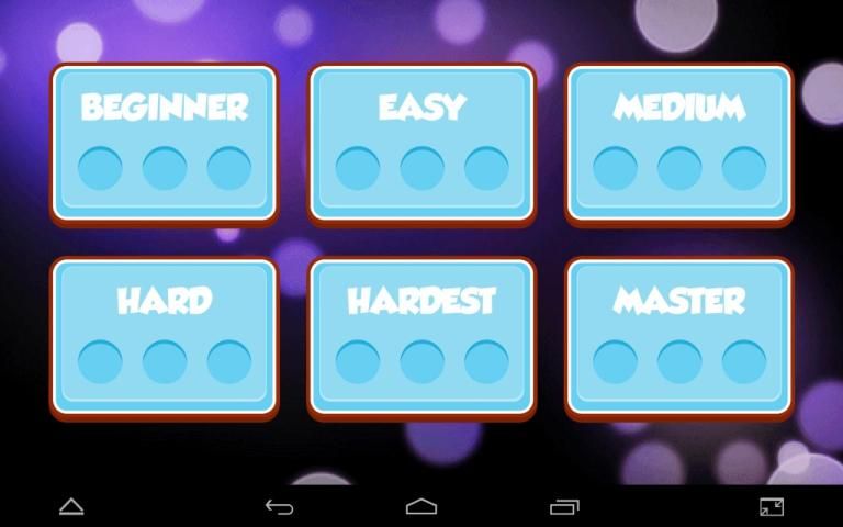 - Tingkat yang berbeda dari kesulitan. Dari pemula untuk menguasai.