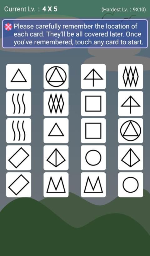 * Matching Card: Dengan membuka dua kartu dengan simbol yang sama, Anda dapat menghapus mereka. Ada banyak tingkat dan beberapa mode: