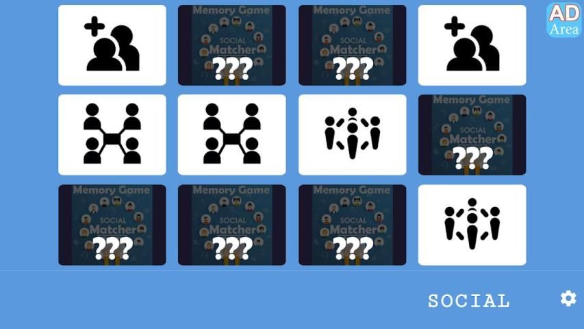 Remembering what kind of "Social" category there is depicted, you need to find the same "Social" category among the other cards. After that cards with the same "Social" category remain open and then disappear from the field.