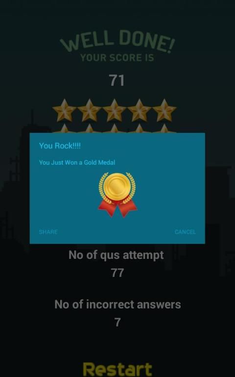 Permainan menyenangkan untuk bermain juga saya akan meningkatkan keterampilan sederhana matematika Anda dan menunjukkan teman dan menantang mereka untuk lulus skor Anda. Dalam setiap pertandingan Anda mendapatkan bintang untuk medali berdasarkan skor Anda dan ketika Anda mendapatkan medali Anda dapat berbagi di dinding Facebook Anda dan menantang ke teman Anda.