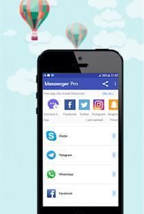 Messenger Pro adalah koneksi untuk semua aplikasi yang berhubungan dengan utusan, seperti Facebook, Twitter, Viber, Whatsapp Messenger, dll, yang memungkinkan Anda untuk