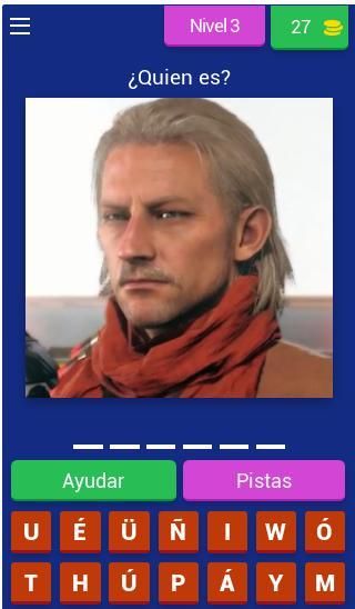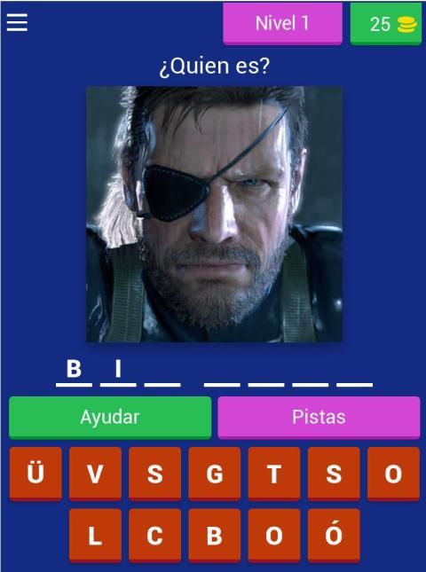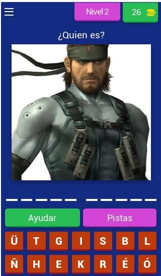 Diviértete adivinando cada uno de los nombres que aparecen en el juego actualmente cuenta con mas de 50 niveles donde encontraras personajes fácilmente reconocibles como a Big Boss y sus hijos Solid Snake, Liquid Snake.