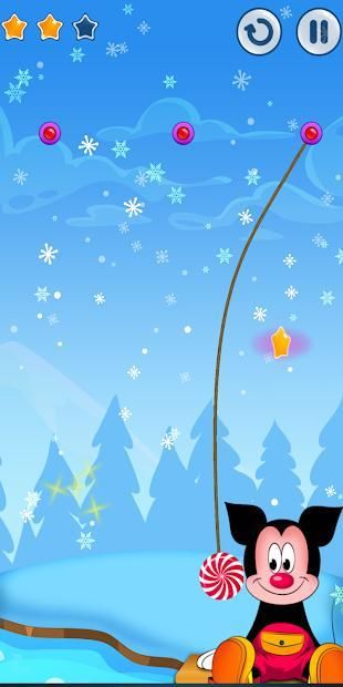 Still very simple rules, familiar as the previous version, the candies will be hanging in the air in many ropes, you just swipe the hand can cut ropes to fall Candy to the mouth of mickey And miniee ,However mouse, to do so requires you to accurately calculate the points fall of the cut wire Crush miniee mouse in different positions while incorporating the flexibility of watching and thinking to pass the challenges in the game.