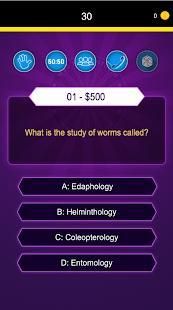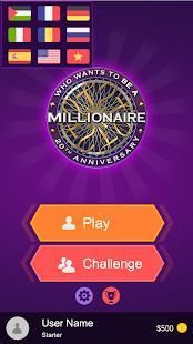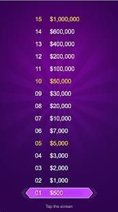 Jika Anda suka menonton, saatnya untuk bermain dan menjadi jutawan! Download dan dicintai oleh 6 juta pengguna di seluruh dunia! Pernah bertanya-tanya apa itu seperti berada di kursi panas dari acara TV, berjuang untuk hadiah utama satu juta? Dengan Millionaire Anda memiliki kesempatan untuk bermain dan mengalami kegembiraan mendebarkan memanjat ke atas melalui 15 menantang teka-teki trivia dari sejarah untuk geografi dan lihat apakah Anda memiliki apa yang diperlukan untuk menjadi jutawan!
