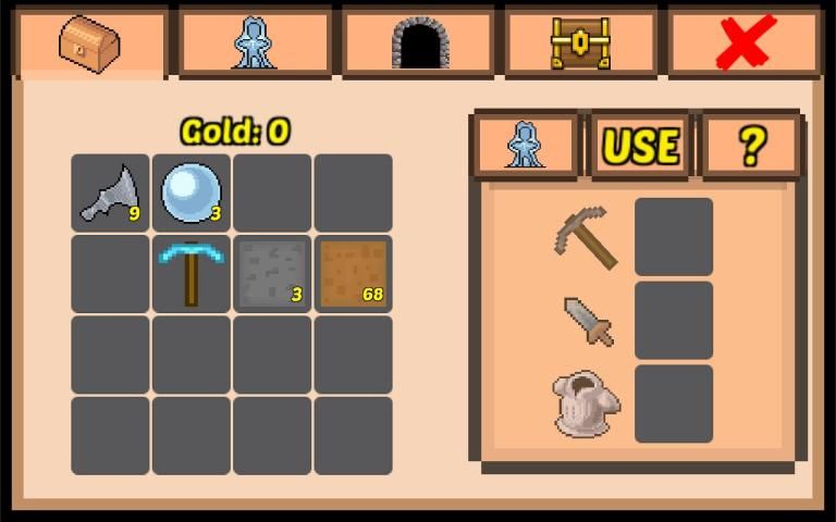 Sistem inventaris - menambang bijih, menghancurkan batu, mengumpulkan tanaman dan menemukan barang langka, artefak dan peti harta karun. Kumpulkan peralatan dan berbagai jenis picks.