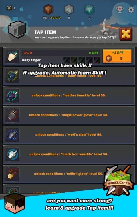 2. Anda dapat membeli & upgrade "Tap Item", dan membeli & tingkat atas "Pekerja" dengan menggunakan "Dirt Coin" !!