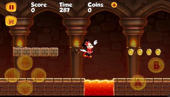 satu dunia ke dunia lain dan Jungle untuk mendapatkan semua koin yang Anda bisa dan berhati-hati untuk tidak jatuh karena jika minnie mouse lakukan