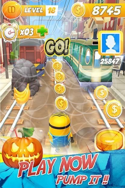 Subway Minion Banana: Petualangan terburu-buru 3D adalah permainan minion baru super untuk penggemar saya tercela dan juga pecinta antek. Ini adalah permainan gratis yang tersedia di playstore. Cepat unggah dan mulailah petualangan dengan karakter minion yang lucu. Anda harus berselancar berlari dan terburu-buru dengan hoverboard, skateboard atau bahkan jetpack dan Anda harus mengumpulkan maksimum jika pisang mengalahkan saingan. Lari, lompatan, dan buru-buru ke kereta bawah tanah seperti jika Anda adalah pahlawan yang tercela saya 3 untuk mengalahkan saingan dan skor teman Anda. Ada banyak item yang tersedia untuk membantu antek lucu untuk mengumpulkan pisang dan menjadi lebih cepat seperti yang tercela saya 3, seperti jetpack atau skateboard luar biasa. Berlari ke kereta bawah tanah dan hindari rintangan. Berselancarlah dan lari cepat dengan hoveboard atau jetpack untuk mengumpulkan pisang. Jadilah pahlawan, antek terbaik untuk menjadi legenda Banana Subway minion Rush 3D.