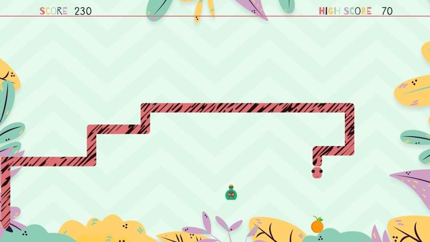The player controls a continuously moving snake on the board. The snake's goal is picking up as much as possible fruits and trying to avoid hitting the walls, its own tail, or the poisons. Each time the snake eats a piece of food, its tail grows longer and the player earns points. As tail grows longer, the snake becomes faster and requires better player skills to be controlled. Are you ready to accept the challenge?