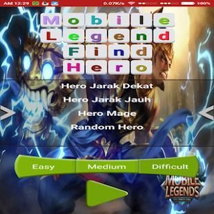 Permainan yang melatih kecepatan mata untuk menemukan Hero sebuah permainan MOBA yang saat ini sedang trend dikalangan remaja dan dewasa Mobile Legend. Terdapat 3 kesulitan disini easy (mudah), medium (sedang), difficult (sulit).
