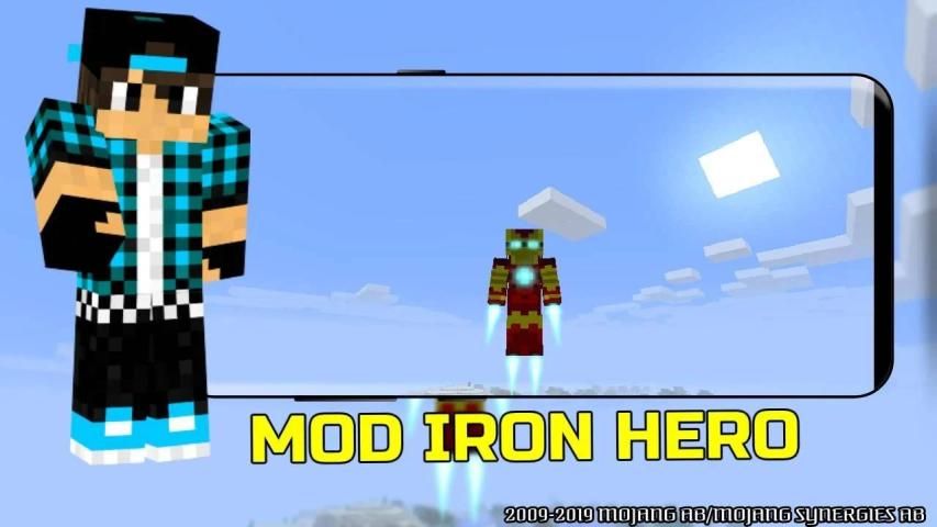 Mod Iron Hero - this add-on will give you the opportunity to be a real superhero. Adding iron hero costumes, you can fly and use weapons, fight back with powerful armor. Survive and explore the map, battle with other evil heroes, prove that you are stronger.