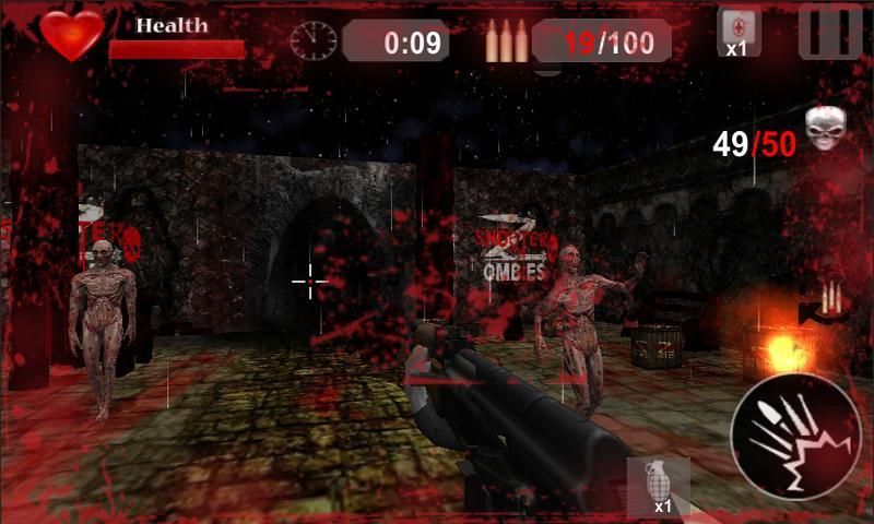Collect different power-ups and bonuses to kill the zombies