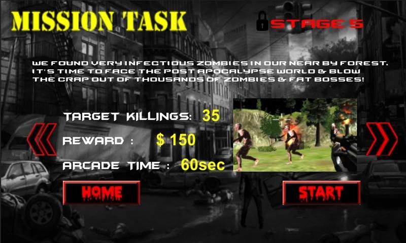 But beware, your ammo is limited so you will have to get crafty and use the straight to head and chest bullets, grenades, split- and buckshot in the most effective way to survive up to 30 stages. Those are timberman, stupid, cruel, big, dead, warrior, Tviruse infected zombies and those zombies can smash you with his madfinger and transfer infection and Tviruse in you and give you death life against other humanity of world.