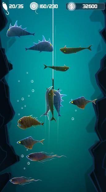 Cast your line, avoid hooking fish while descending and catch as many fish as you can on your way up!