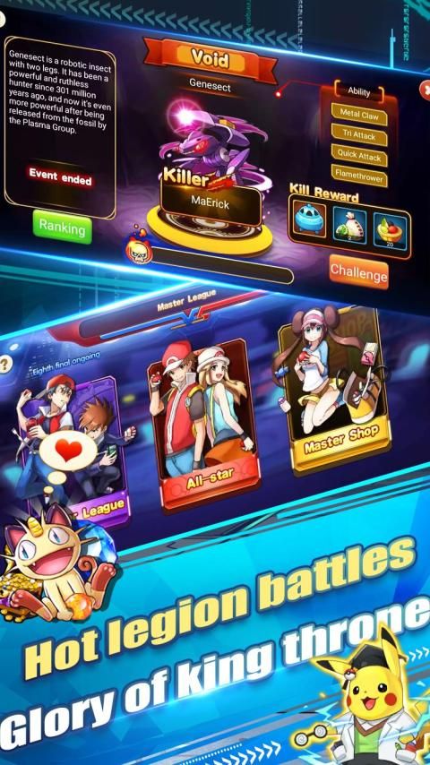 Tantang dan kumpulkan monster Mythical, kalahkan semua Gym Leaders dan jadilah juara dunia. Ini adalah impian kita.