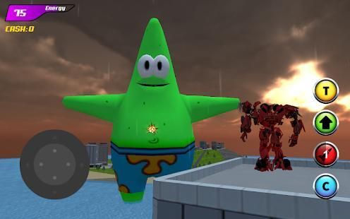 - A real flying car in a human robot to save the city.