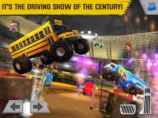 Masukkan Rakasa Truk Arena dan mendorong terbesar, paling kejam, paling menarik Rakasa Truk & Mobil. Gunakan landai sebagai alasan untuk melompat menakjubkan, mendorong Rakasa Anda Truk di mobil yang terlihat seperti mainan dibandingkan dengan Anda, melakukan loop-the-loop ... Yang terpenting, lakukan semua itu dengan gaya. Kontrol permainan dirancang dengan cara yang membuat menarik dari trik pikiran-meniup mudah dan mudah. 50 misi yang berbeda tidak hanya akan menguji keterampilan mengemudi Anda, tetapi memungkinkan Anda untuk memamerkan cipta dan imajinasi Anda.