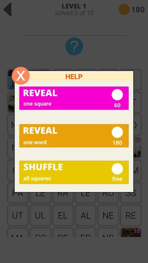 Menebak kata yang tersembunyi menggunakan foto untuk petunjuk, kata-kata dibagi menjadi fragmen, teka-teki yang kompleksitas yang berbeda, dari kata-kata yang mudah, solusi yang mengambil detik dan kata-kata yang kompleks, solusi yang akan menghabiskan banyak waktu .