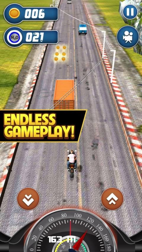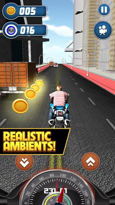 Secepat mungkin kecepatan balap, menjadi pengemudi sepeda motor terbaik di dunia! Balap sepeda motor Anda, Balap di jalan dan jalan raya sibuk tak berujung, lepas dari kendaraan dan selesaikan tantangan. Bersaing dengan pembalap profesional. Ambil berbagai pemandangan dan nikmati pengalaman berkendara yang nyata ini, tetapi jangan bersantai, jalannya penuh dengan mobil berkecepatan tinggi, Anda harus berhati-hati untuk menghindari kendaraan ini.
