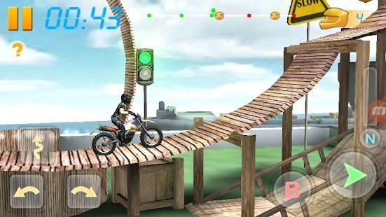 Mengontrol sepeda motor Anda untuk menghindari rintangan di jalan dan mencapai garis finish dalam waktu sesingkat mungkin,