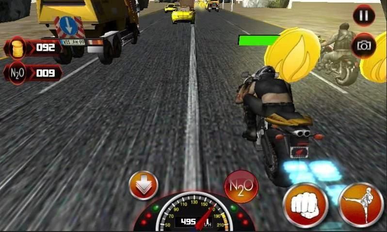 Tali pada helm, tarikan atas pelindung keselamatan dan siap untuk balapan menarik. Jangan di bawah perkiraan lomba ini, karena Anda akan menghadapi serangan praktis dari pengendara musuh sepeda motor. Di luar mereka pembalap pemula, tidak pernah memperlambat, akan hancur berkeping-keping.