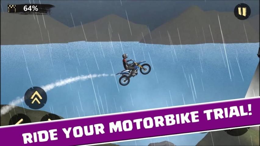 Anda dapat memilih sepeda motor atau quad, melompat untuk menghindari rintangan dalam waktu kurang. Cobalah untuk membuka gas pada sepeda motor berkecepatan tinggi untuk menjadi juara moto pada kejuaraan uji coba dunia!