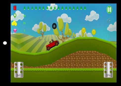 You drive your car through mounds and hills springs views in a red car that climb hills and avoid a meyterious haunted wheel from hell.