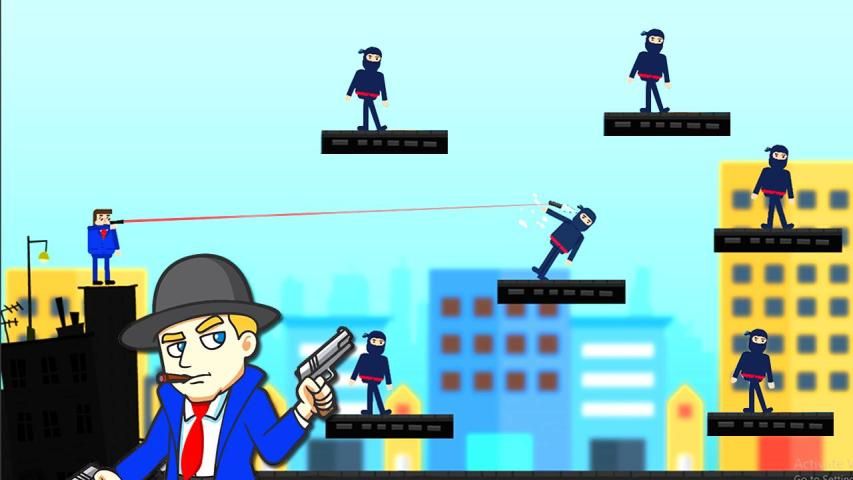 Di sini Anda memainkan Peran Mr Bullet dan menembak semua Saingan