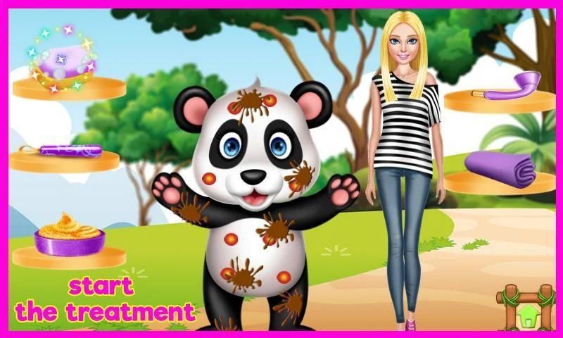 Hei girls. This cute little panda was found in the forest looking bad so the young lady who found it decided to help this cute animal with a treatment. Could you give her a helping hand and treat this little animal to feel and look better?