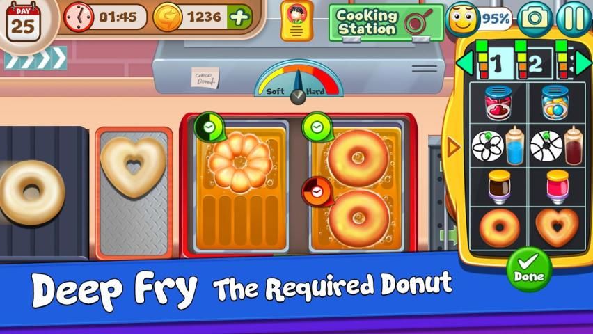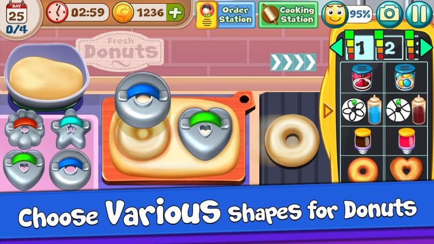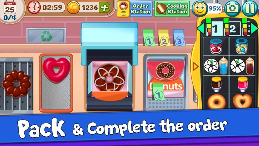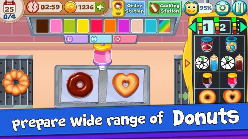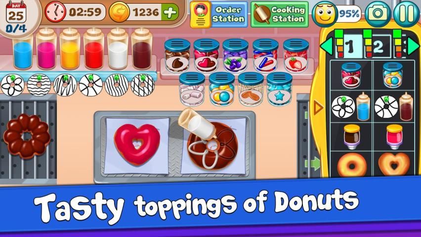 NOTE: Upgrade your shop with new toppings and equipment to compete donuts order and earn more money.