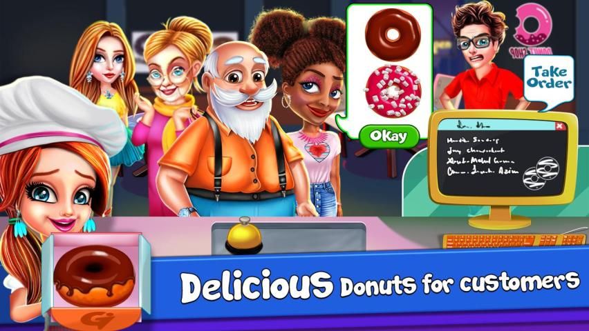 Hey Friends, Ever imagined running your own donut shop? Then we have brought a perfect donut shop simulation game. In this game, you need to run a donut shop by cooking various donuts for your customers. Lots of customers are waiting at the dining area for their orders. Prepare donuts with different appliances, flavors, toppings and other frostings. Upgrade your restaurant decorations to attract more customers to your donut food truck. Get this game now and start playing awesome gameplay with fun play area.