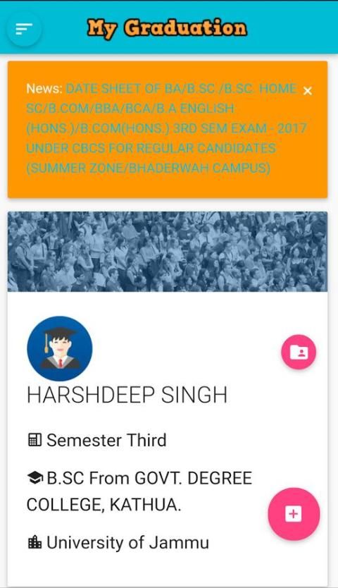 aplikasi Wisuda saya memberikan setiap siswa secara individual update terkait / Statusnya saat nya di Wisuda Universitas Jammu dan Cluster Universitas Jammu.