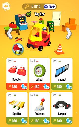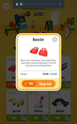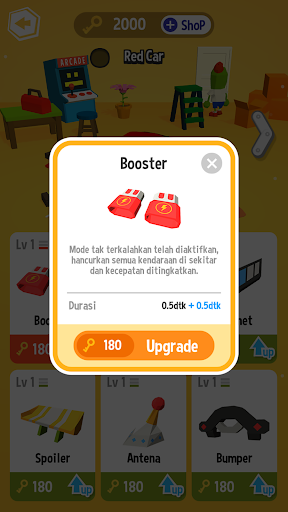 Lalu kamu juga bisa men-tuning mobilmu menjadi lebih kuat dengan key yang diperoleh setiap bermain game.