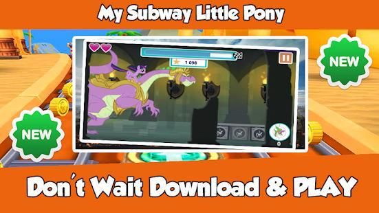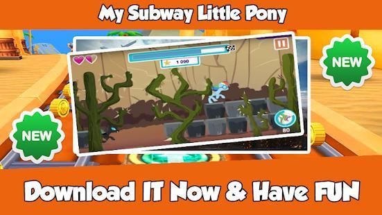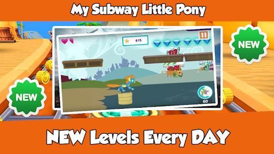 If you're looking for a fun game!, this will be the best choice to you My Subway Little Pony is an adventure running and jumping princess game on subwa , try to help our hero pony to win This Little Unicorn game is so easy, simple and super entertainment.