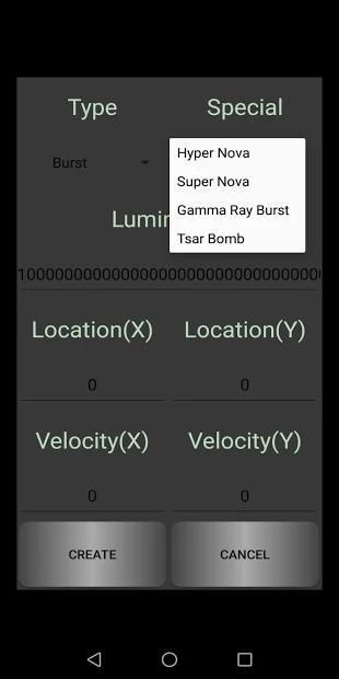 Game simulasi alam semesta yang Anda dapat melakukan beberapa peristiwa astronomi dan membuat sistem bintang Anda sendiri.