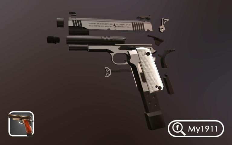 Dengan aplikasi My1911, Anda akan dapat menyesuaikan pistol terkenal 1911. Cukup pilih dan mengubah item yang diinginkan Anda ingin perubahan.